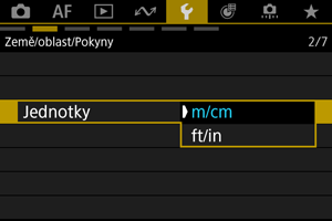 Jednotky ukazující vzdálenost zobrazené při používání zoomu nebo snímání s ručním zaostřováním můžete změnit z [m/cm] na [ft/in].