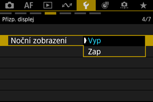 Barvu informací zobrazených na obrazovce a barvu obrazovky nabídky můžete změnit na takovou, která je vhodná pro snímání v tmavých oblastech.