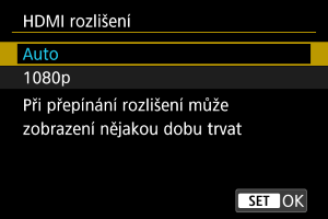 Nastavte rozlišení obrazového výstupu, když je videokamera připojena k televizoru nebo externímu nahrávacímu zařízení pomocí kabelu HDMI.