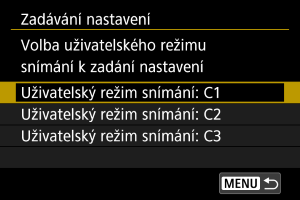 - Vyberte uživatelský režim snímání, který chcete zaregistrovat, a pak vyberte [OK] na obrazovce [Zadávání nastavení].