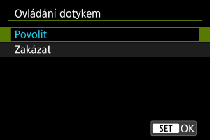 - Pokud chcete dotykové ovládání zakázat, vyberte možnost [Zakázat].