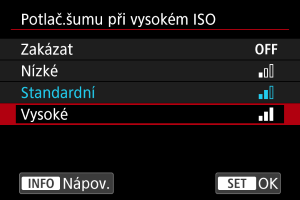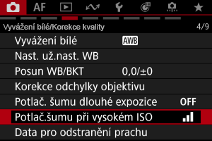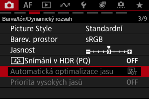 Ztmavené položky v nabídce nelze nastavit. Použití těchto položek bylo omezeno jinými nastavenými funkcemi.