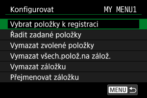 Vyberte možnost [MY MENU*: Konfigurovat].
