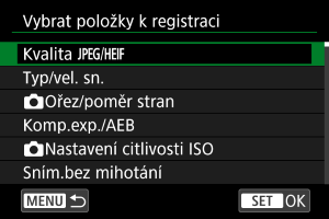Vyberte možnost [Vybrat položky k registraci].