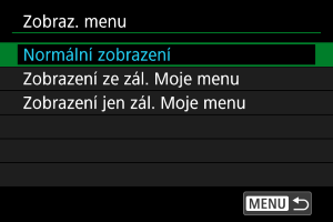 Nastavení zobrazení nabídky