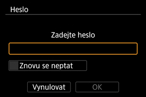 V takových situacích vyberte na obrazovce pro zadání hesla možnost [Znovu se neptat].