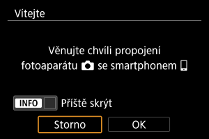 Když se objeví obrazovka nastavení a vy vyberete možnost [OK], zobrazí se pokyny k připojení ke smartphonu ().