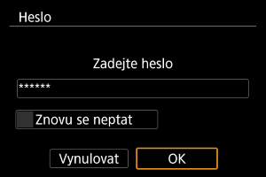 nebo fotoaparát obnoví činnost z automatického vypnutí napájení. Zadejte nastavené heslo.