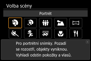 [] (Portrét) použijte pro rozmazání pozadí a vyniknutí osoby, kterou snímáte. Zajišťuje také jemnější vzhled odstínů pokožky a vlasů.
