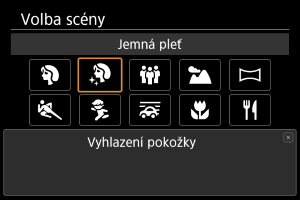Možnost [] (Jemná pleť) použijte pro snímky, na kterých má být krásnější pleť. Zpracování snímku umožňuje jemnější zobrazení pleti.
