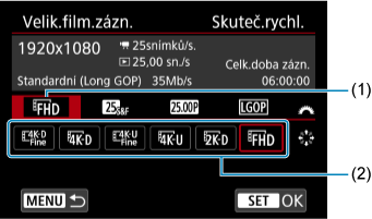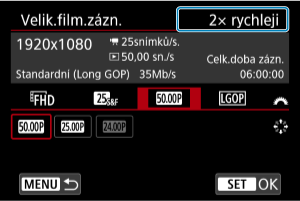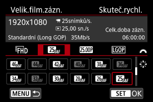- Nastavená snímková frekvence se může změnit, když nastavíte [
