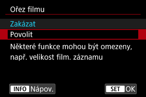 Záznam filmů s objektivy RF-S/EF-S má stejný účinek jako tato funkce pro oříznutí filmu.