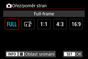 : Přidání informace o ořezu] je k dispozici pouze tehdy, když je nastavena možnost [Full-frame].