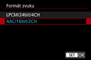 Můžete zvolit formát zvuku používaný pro zvuk při záznamu filmů.