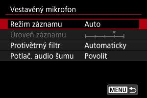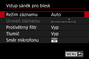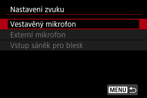 V tomto nastavení nakonfigurujte mikrofony na záznam zvuku. Při používání externích mikrofonů nebo mikrofonů určených pro multifunkční patici nahlédněte také do návodu k použití mikrofonu.