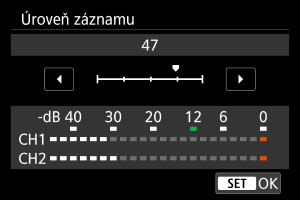 Úroveň záznamu zvuku můžete upravit podle potřeby. Nastavte úroveň v části [Úroveň záznamu].