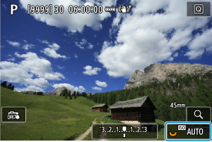 - Pokud je zvolena možnost [AUTO], stisknutím tlačítka spouště do poloviny se zobrazí aktuálně nastavená citlivost ISO.