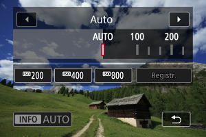 - Často používané hodnoty nastavení citlivosti ISO můžete zaregistrovat zadáním jiné možnosti než [AUTO] a výběrem [Registr.].