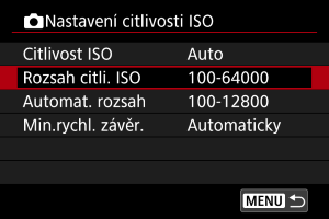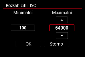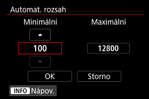 Můžete nastavit rozsah ručního nastavení citlivosti ISO (nejnižší a nejvyšší mez).