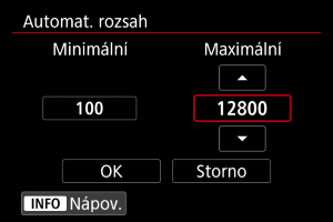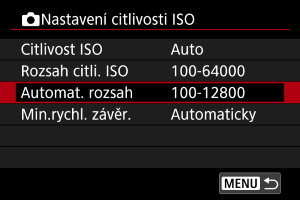 Rozsah automatické citlivosti ISO pro ISO Auto můžete nastavit.