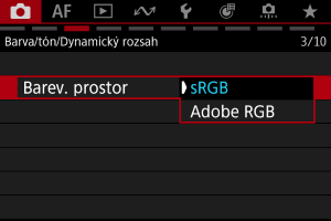 - Vyberte možnost [sRGB] nebo [Adobe RGB] a pak stiskněte