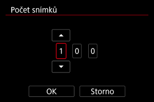 - Snímání se ukončí po zadaném počtu snímků nebo na vzdáleném konci ohniskové vzdálenosti.
