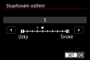 Určete, jak hodně posunout zaostřování. Tato hodnota se automaticky upravuje, aby vyhovovala hodnotě clony v momentu snímání.