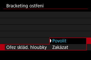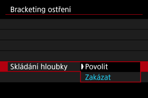 - Vyberte možnost [Zakázat] pokud si nepřejete kompenzovat změny v jasu snímku během bracketingu ostření. Tuto možnost použijte pro jiné účely než pro hloubkovou kompozici zachycených snímků v programu Digital Photo Professional ().