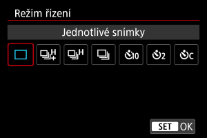 Z nabídky můžete vybrat různé možnosti režimu řízení. Podrobné informace naleznete v části Výběr režimu řízení ().