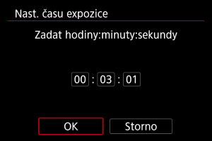 Čas expozice pro snímání s dlouhou expozicí režimu Bulb můžete nastavit předem. Tato funkce odstraňuje potřebu přidržovat stisknuté tlačítko spouště během snímání s dlouhou expozicí, což může snížit rozhýbání fotoaparátu.
