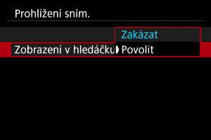 Chcete-li zobrazit snímky v hledáčku okamžitě po vyfotografování, nastavte hodnotu [Povolit].
