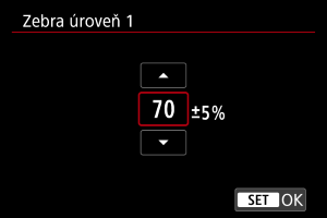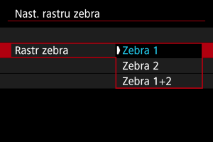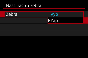 - Když nastavíte funkci [Rastr zebra], doporučujeme předem zkontrolovat úroveň zobrazení rastru zebra.