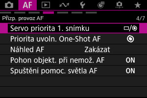 Můžete stanovit prioritu ostření nebo prioritu časování uvolnění jednosnímkového automatického zaostřování (One-Shot AF) (s výjimkou snímání s expozicí dotykem).