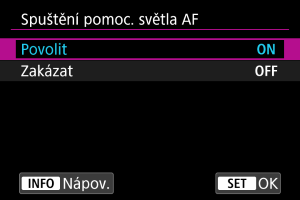 Můžete povolit nebo zakázat spuštění pomocného světla AF fotoaparátu nebo blesků Speedlite určených pro fotoaparáty EOS.