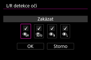 : L/R detekce očí] indikuje, že došlo k úpravě výchozího nastavení.