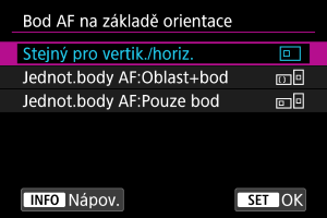Polohy AF bodů nebo rámečků zóny AF, které přiřadíte ke každé ze tří orientací fotoaparátu, budou uloženy.