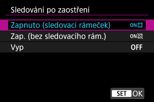 Díky těmto úrovním bude fotoaparát s menší pravděpodobností sledovat jiný objekt, pokud bude mít hlavní objekt tendenci unikat z AF bodů. Čím nižší je hodnota, tím pomaleji fotoaparát reaguje.