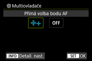 - Nyní můžete přepínat oblasti AF pomocí ovladače