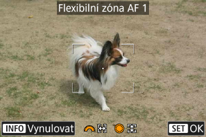 Velikost rámečků zóny AF používaných pro Flexibilní zónu AF 1 – 3 je možné změnit.