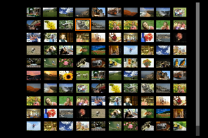 - Zobrazení indexu 4 snímků. Vybraný snímek je zvýrazněn oranžovým rámečkem.