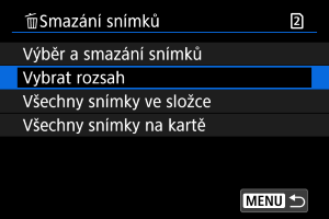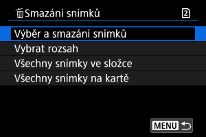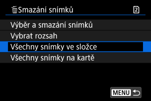: Smazání snímků], dojde k vymazání všech snímků ve složce nebo na kartě.