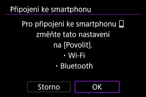 - Pokud tento krok provedete během připojení přes Bluetooth, zobrazí se zpráva s žádostí o navázání připojení Wi-Fi. Po stisknutí tlačítka