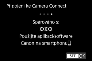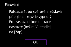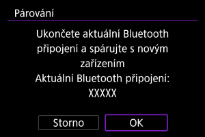 - Je-li fotoaparát už spárován s jiným zařízením, zobrazí se zpráva.