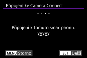 - Pokud aplikace Camera Connect není nainstalována, naskenujte pomocí smartphonu QR kód na obrazovce, přejděte na Google Play nebo App Storu a nainstalujte aplikaci Camera Connect, poté stisknutím tlačítka