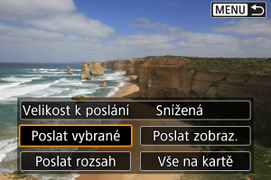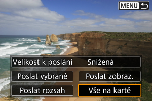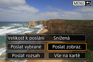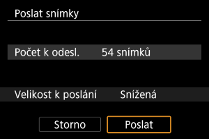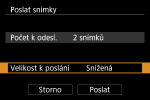 - Pokud odesíláte více snímků, [Velikost k poslání] můžete také podle potřeby změnit před odesláním na potvrzovací obrazovce.