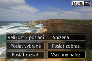 Okamžitě odešlete všechny obrázky, které odpovídají podmínkám vyhledávání nastaveným v nabídce [: Nast. podm. vyhled. snímků]. Podrobnosti o [