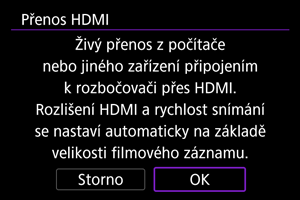 Tuto možnost vyberte, pokud budete streamovat přes připojení HDMI pomocí zařízení kompatibilního s funkcí HDMI.