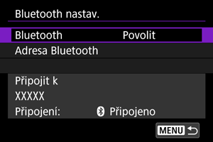 Můžete zkontrolovat adresu Bluetooth fotoaparátu.