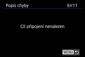 Můžete zobrazit podrobnosti o chybách ovlivňujících komunikaci fotoaparátu.