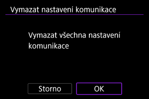 Veškerá nastavení bezdrátové komunikace lze odstranit. Vymazáním nastavení bezdrátové komunikace zabráníte zobrazení informací o tomto nastavení v případě, kdy fotoaparát někomu zapůjčíte.